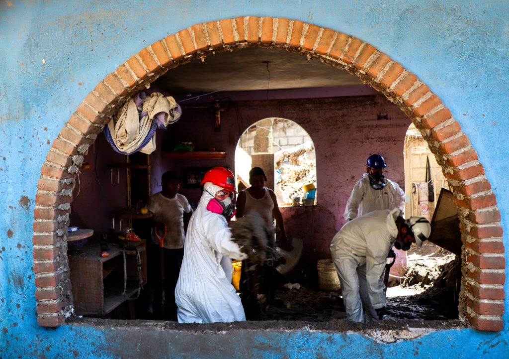 We initially distributed 300 hygiene kits in the Colonia Nueva neighborhood, to support the community clean their homes safely, protect themselves from infections and prevent illnesses, as the mud is contaminated and can cause severe health risks. Once the streets had been cleared, we worked alongside local volunteers removing mud from homes – pickaxe and shovel in hand, hauling out soaked mattresses and damaged possessions. This was a lengthy and exhausting task, but the resilience of the community kept us going (as did the tamales and café de olla they shared with us!).